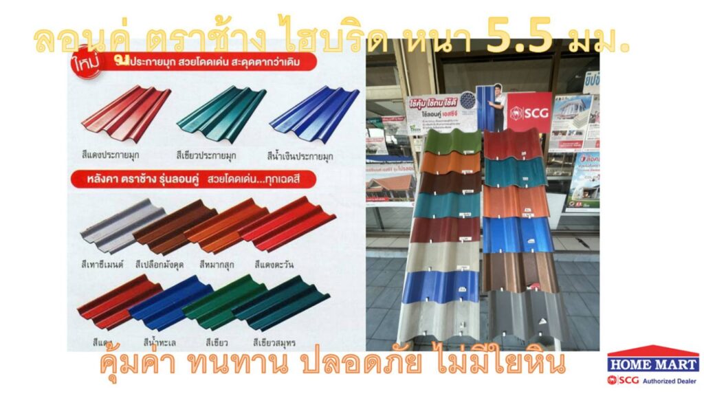 กระเบื้องลอนคู่ตราช้างหนา 5.5 มม. ปลอดภัยไม่มีใยหิน
